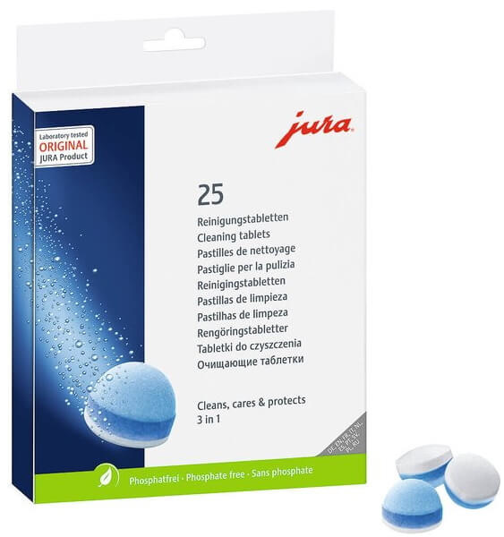 Het uitvoeren van een reinigingsprogramma neemt circa 20 minuten in beslag. Wacht geduldig tot het programma volledig is afgerond. Gebruik Jura 3-in-1 Reinigingstabletten of Eccellente 2-in-1 Reinigingstabletten voor Jura. Ben je benieuwd naar het verschil en wil je weten welke je het beste kunt kiezen? Lees ons blog over het verschil tussen 2-in-1 en 3-in-1 reiniging.