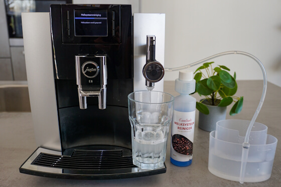 De cappuccinatore van jouw E8 bereidt moeiteloos de lekkerste cappuccino, latte macchiato of flat white. Melk bevat eiwitten en vetten die zich hechten aan het melksysteem, waardoor de smaak vermindert en het systeem verstopt kan raken. Spoel het melksysteem na gebruik direct even door en reinig het dagelijks met 10 ml Eccellente Vloeibare Melksysteemreiniger of één doseereenheid Jura Minitabs.